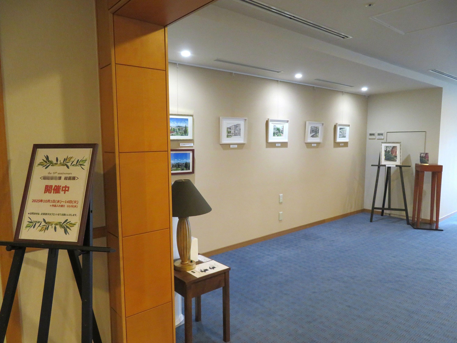 CGAの庭園や建物を描きためられている居住者様に作品をお借りして、開設をお祝いするサロン展を開催いたしました。