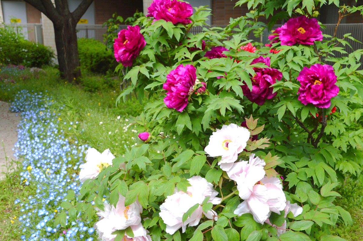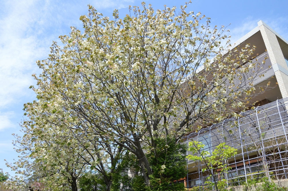 いとしの庭・東側ではアップルブロッサム、西側には菩提樹の木の新緑も芽吹き、染井吉野と一緒に楽しむことができます。