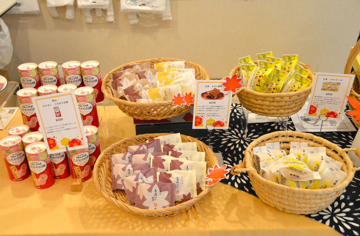 ワークショップの合間には、もみじ饅頭など中国地方のお菓子を中心としたショップ販売にお立ち寄りいただき、館内は笑い声に包まれました。 -